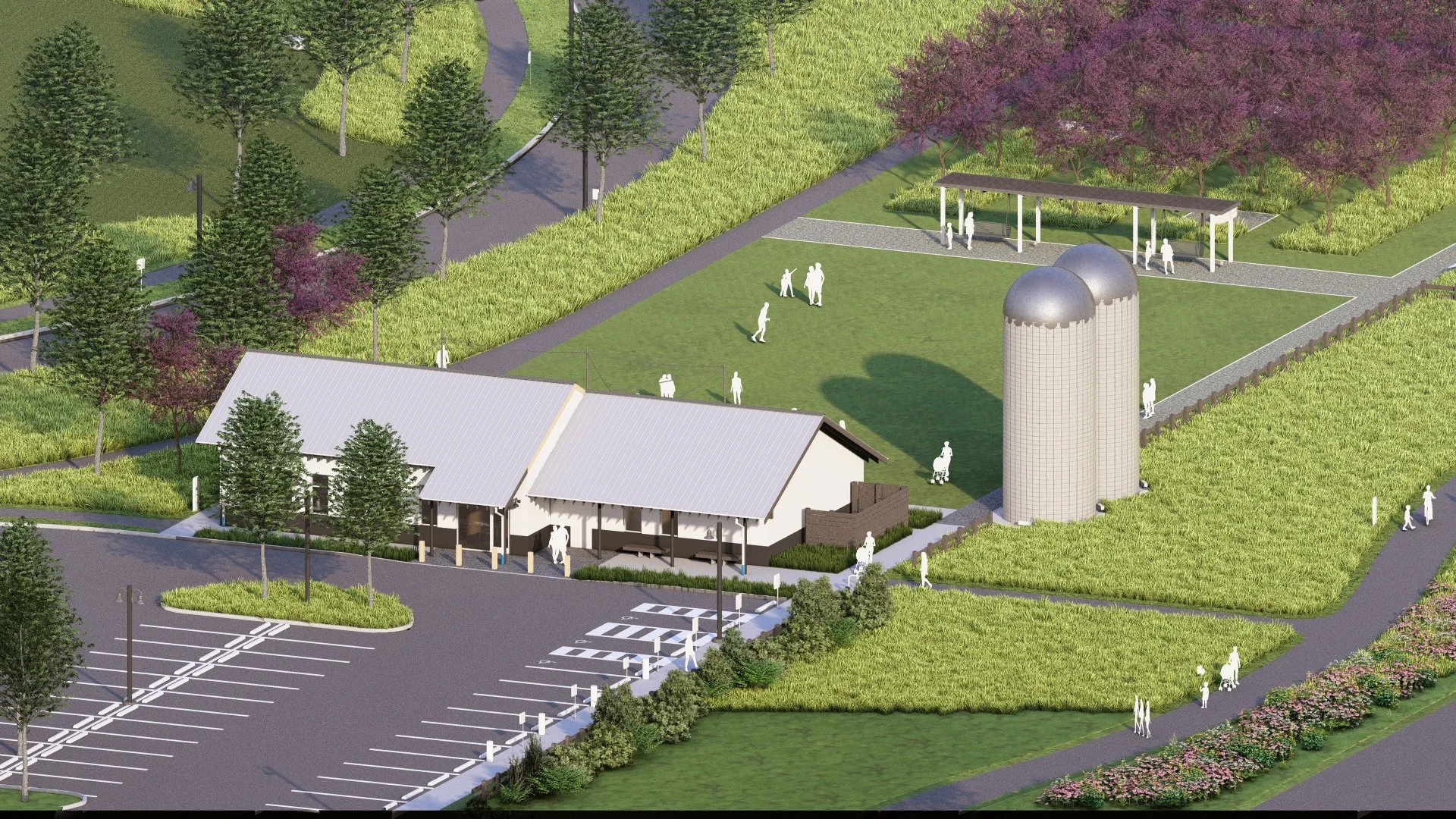 Architectural enhancements are concentrated along West Case Road. The historic farmhouse will be preserved in place, and the existing silos will be retained and paired with a new event building. A new northwest outpost for the Forestry Department will be constructed in the northeast corner of the site, expanding the Department’s operational reach and supporting the goals of the recently completed Urban Forestry Master Plan.